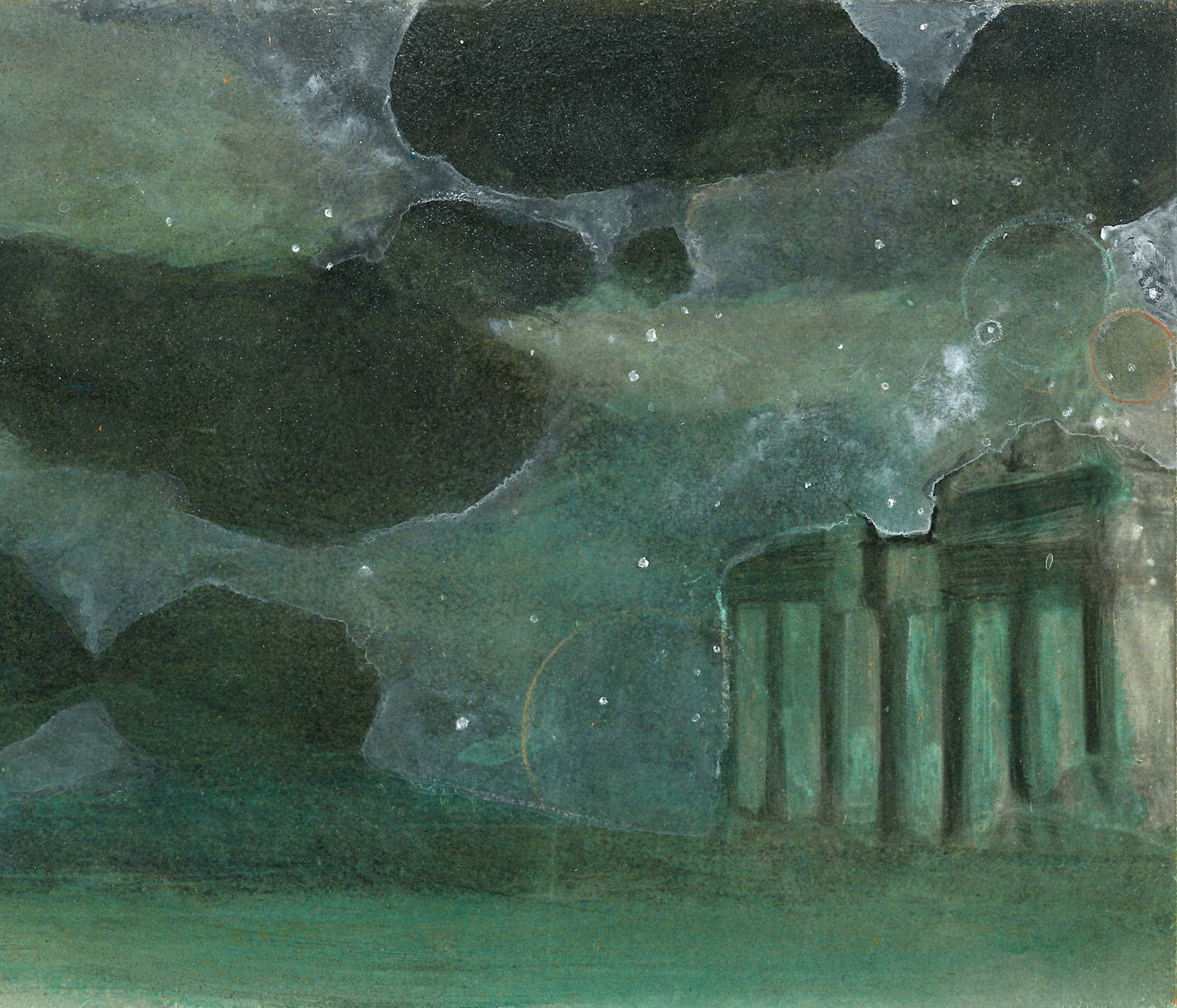 Nell’immagine il Tempio dai sette pilastri, dettaglio tratto da “Ho avuto paura di tornare a casa”, figurazione realizzata da Veronica Leffe per l’omonima poesia di Pier Paolo Di Mino.