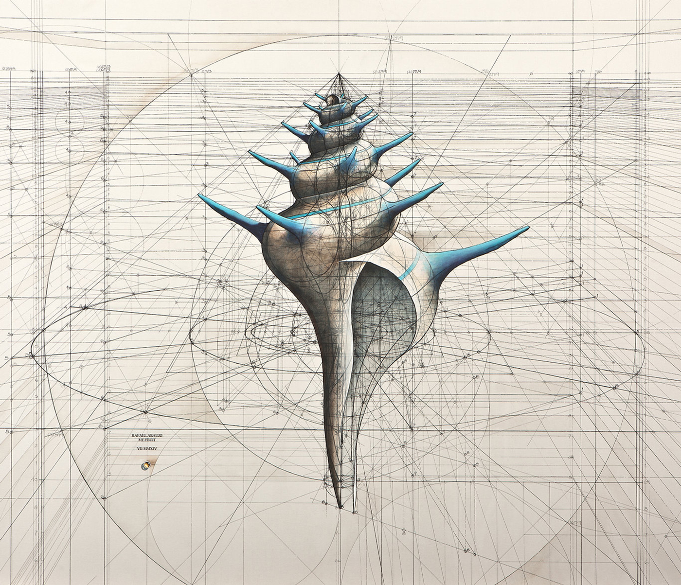 Nell’immagine, “Blue spikes’ shell”, un’illustrazione di Rafael Araujo (immagine © Rafael Araujo, gentilmente concessa dall’artista).