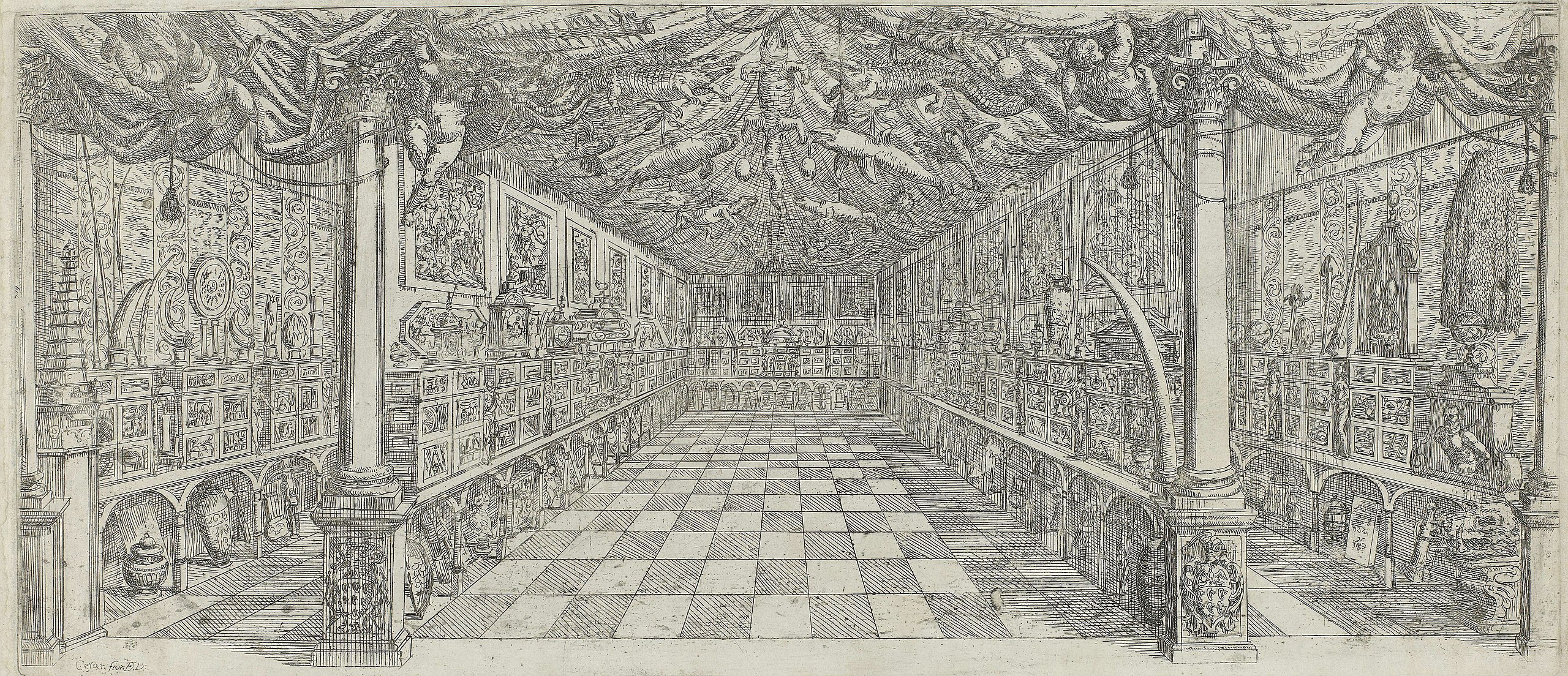 Nell'immagine, "Gabinetto d'arte di Manfredo Settala a Milano", acquaforte su carta realizzata nel 1666 ca. da Cesare Fiori, stampatore, su suo disegno (immagine nel pubblico dominio, licenza CC 1.0 Universal Public Domain Dedication, tramite Wikimedia Commons).