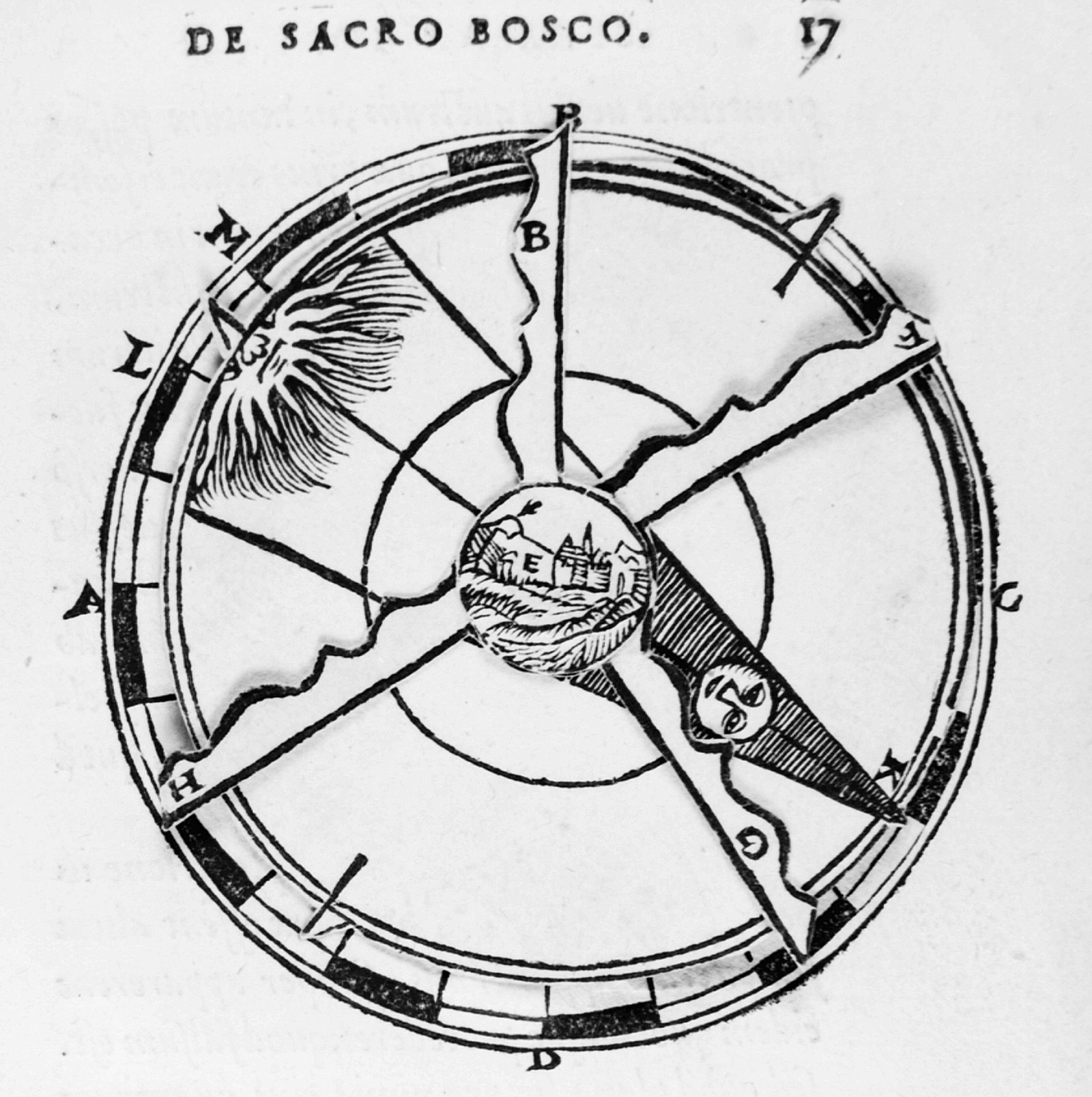 Nell’immagine, un’incisione tratta da un’edizione cinquecentesca del trattato di astronomia De sphaera mundi scritto da Giovanni Sacrobosco nel 1230 ca. (immagine nel pubblico dominio, tramite Wikipedia Commons).