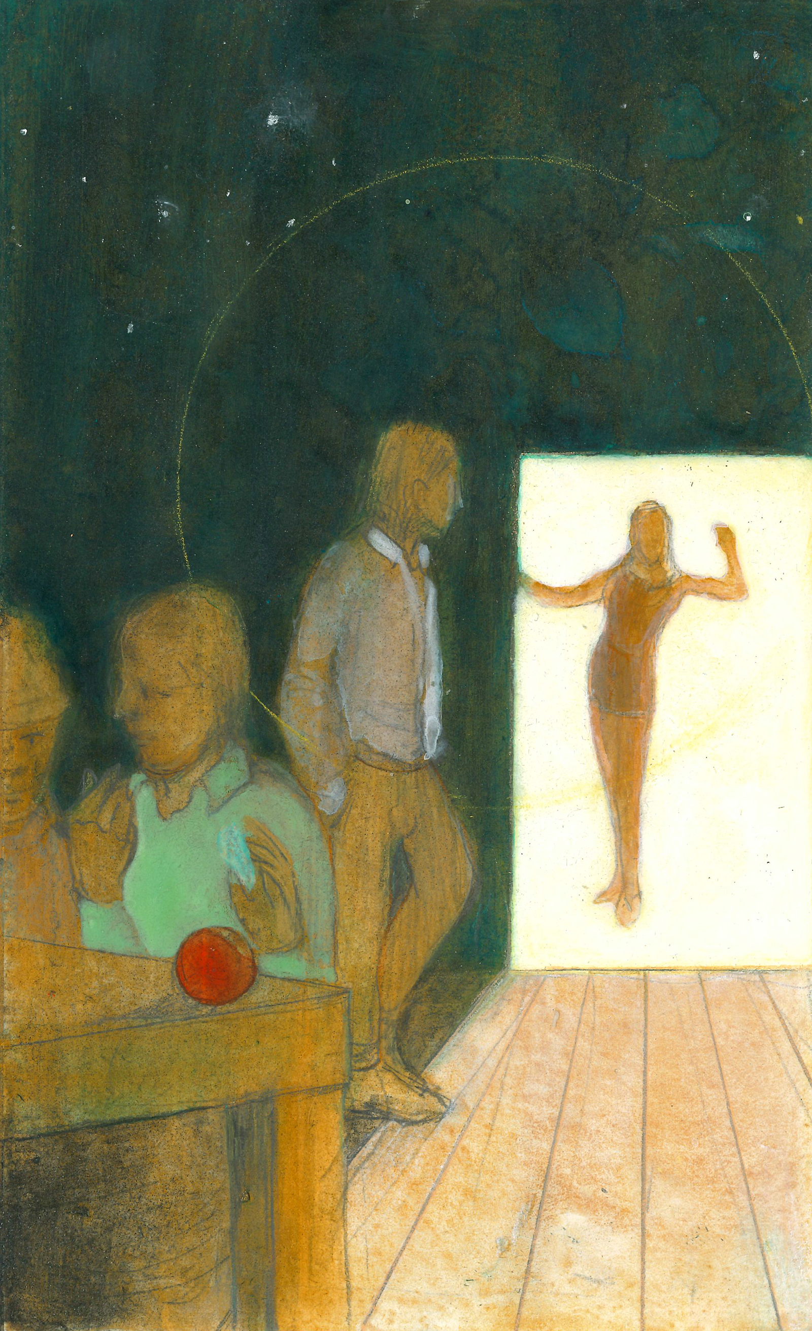 Nell’immagine “I vecchi bevevano vino e gazzosa” figurazione di Veronica Leffe per il secondo Intermezzo del Libro azzurro.