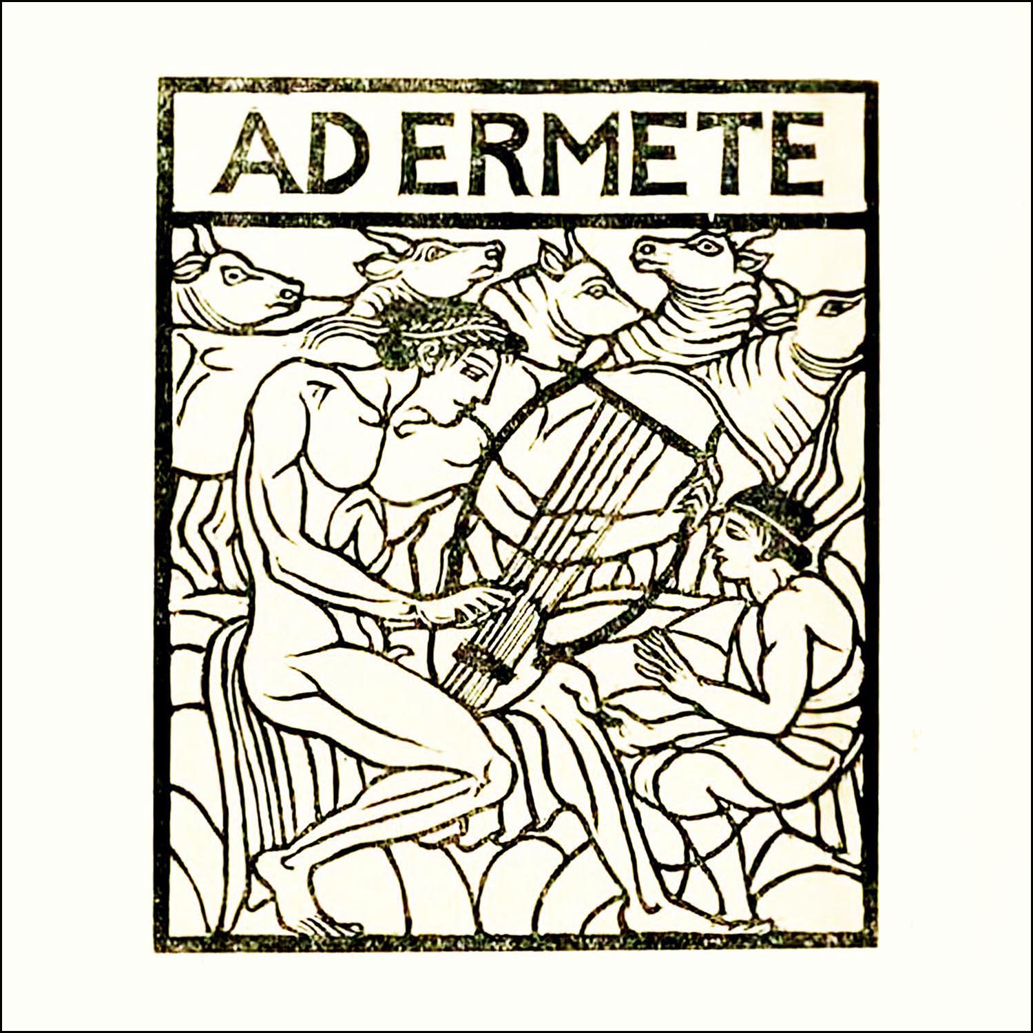 L’immagine, “Ad Ermete”, è l’elaborazione grafica di un’incisione di Adolfo de Carolis realizzata per le illustrazioni al testo a I poeti greci tradotti da Ettore Romagnoli - Omero minore, Nicola Zanichelli Editore, Bologna 1925, p. 54 (l’immagine è nel pubblico dominio, via Wikipedia Commons).
