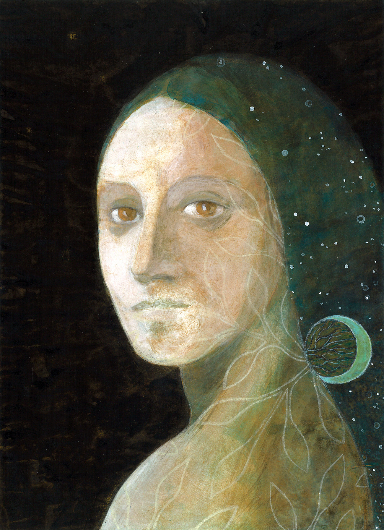 Nell’immagine “Chthoníē”, una figurazione di Veronica Leffe, pittura acrilica su carta.