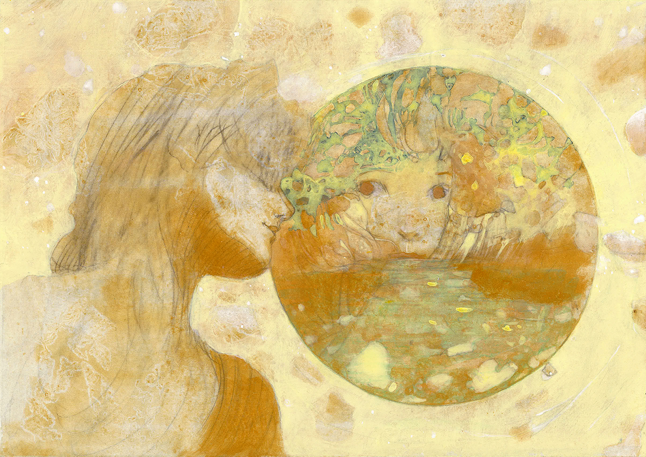 Nell'immagine, "Dioniso allo specchio", una figurazione di Veronica Leffe, pittura acrilica su carta incollata su tavola.