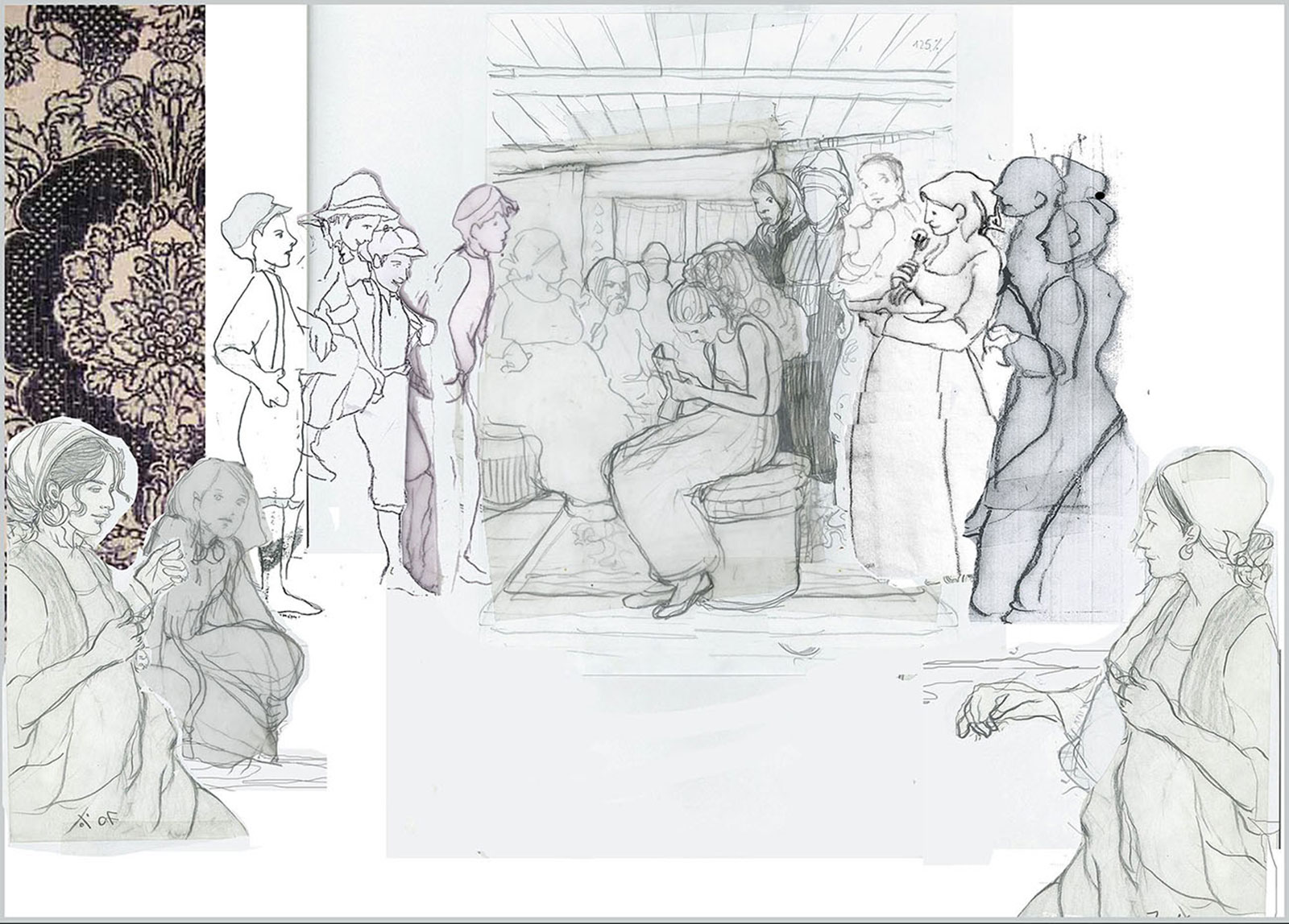 Nell'immagine, uno dei bozzetti preparatori delle figurazioni che Veronica Leffe sta realizzando per il secondo capitolo del Libro azzurro: I semi di Gianagagava.