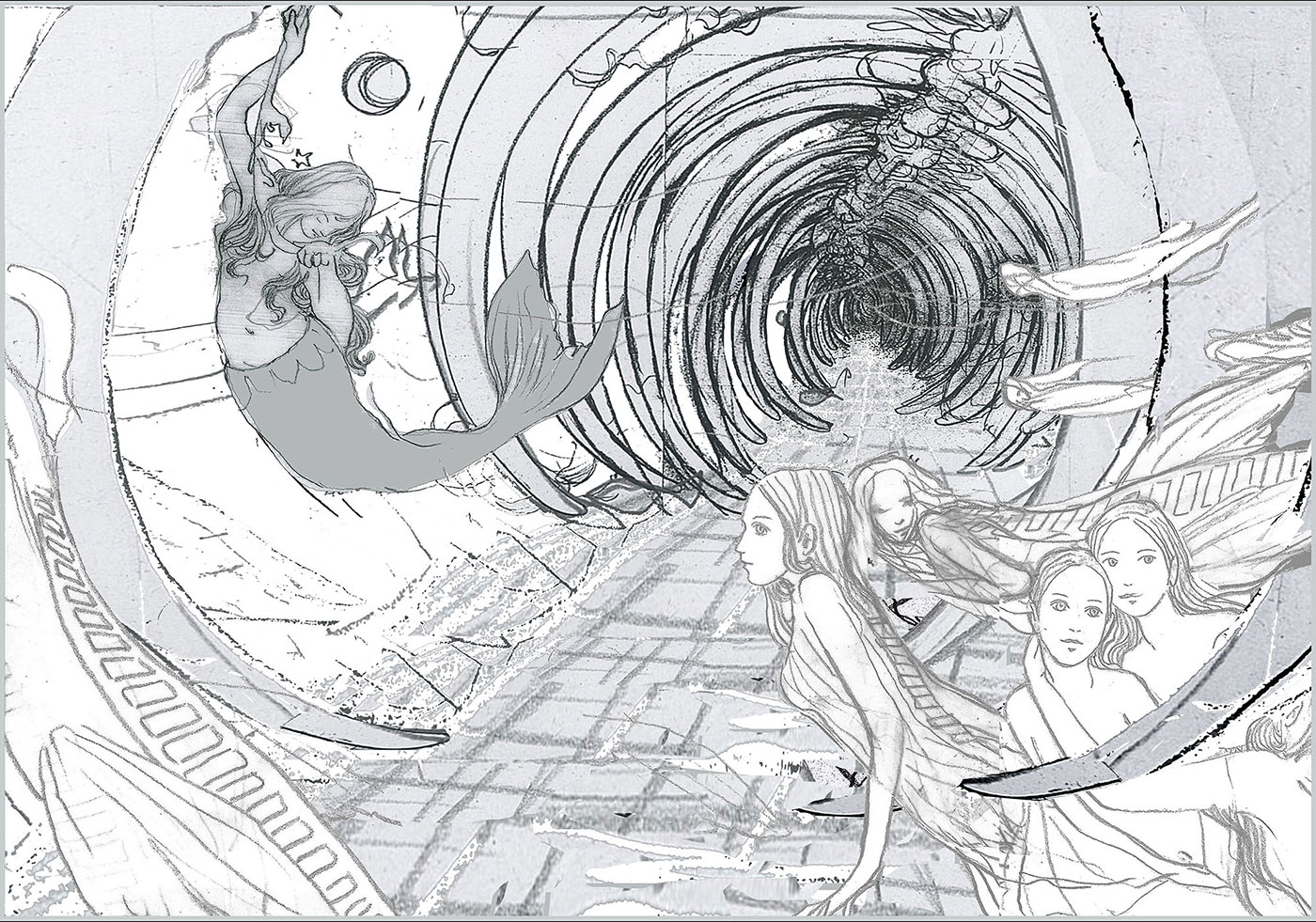 Nell'immagine, uno dei bozzetti preparatori delle figurazioni che Veronica Leffe sta realizzando per I semi di Gianagagava, secondo capitolo del Libro azzurro.