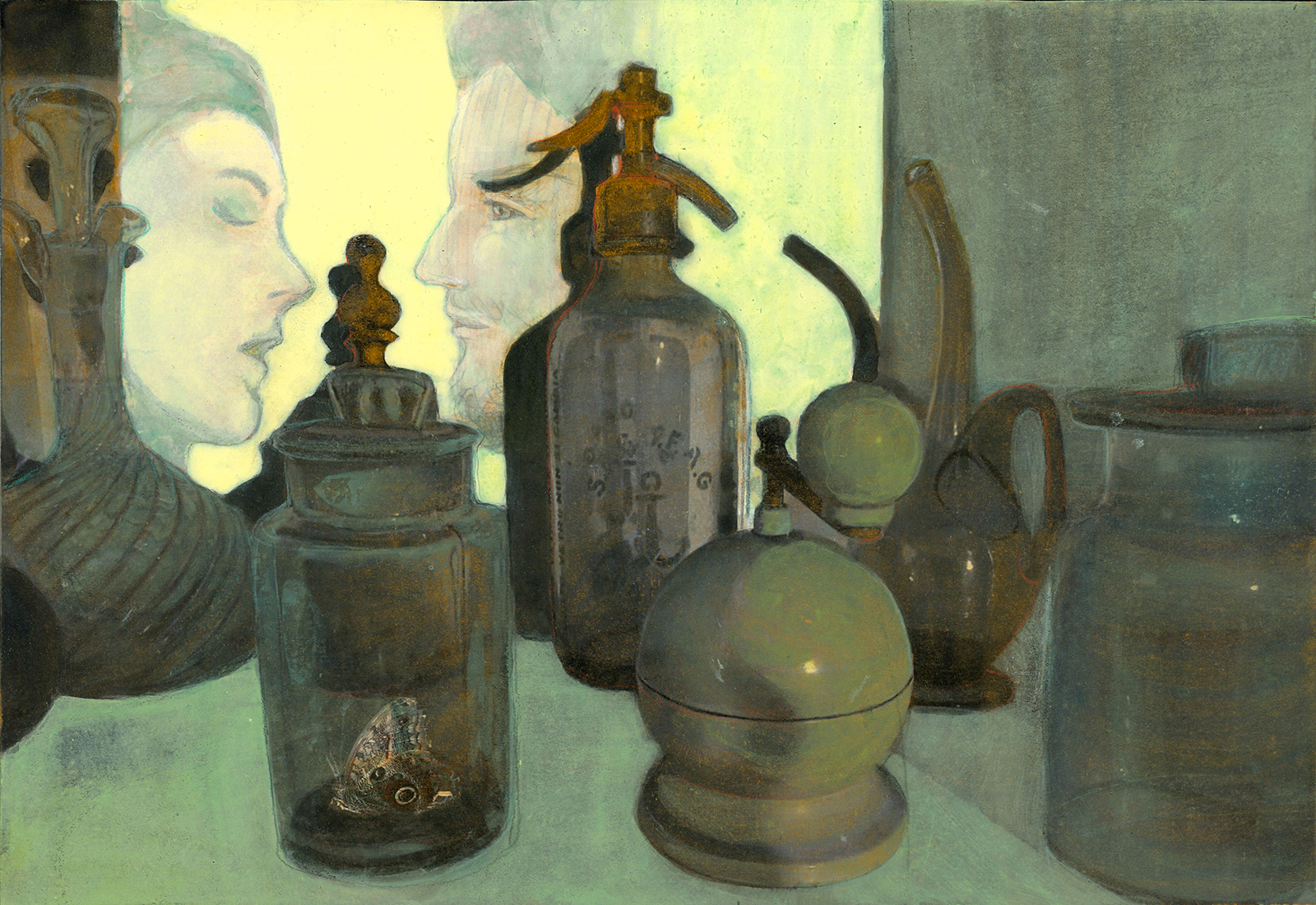 Nell’immagine “Era verso la fine del mondo”, pittura acrilica su carta incollata su tavola realizzata da Veronica Leffe per l’omonima poesia di Pier Paolo Di Mino (dalla rubrica “Era verso la fine del mondo” de “Il libro azzurro”).
