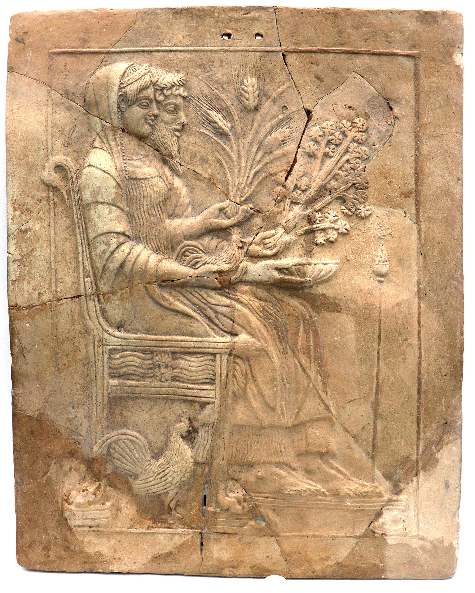 Nell’immagine, pinax con Ade e Persefone, proveniente da Locri, databile tra il 1199 e il 600 a. C., oggi conservato presso il Museo Archeologico Nazionale di Reggio Calabria (Foto di Fabien Bièvre-Perrin, licenza CC BY-SA 4.0, tramite Wikimedia Commons).